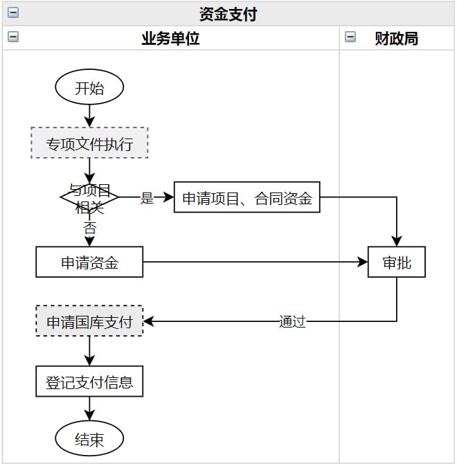 专项资金管理配套主要业务流程有三个:项目立项流程、资金分配流程、资金支付流程。