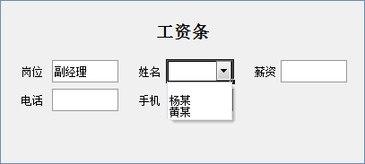 使模板上的某些数据项能够通过下拉选择的方式输入数据,不仅能方便输入,还能保证输入的正确。这时需要两个步骤:1.定义下拉列表,2.把下拉列表和模板上的数据项关联起来。